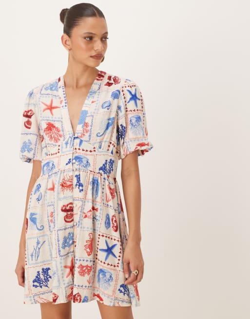 Nobody's Child Starlight short sleeve mini dress in shell tile print