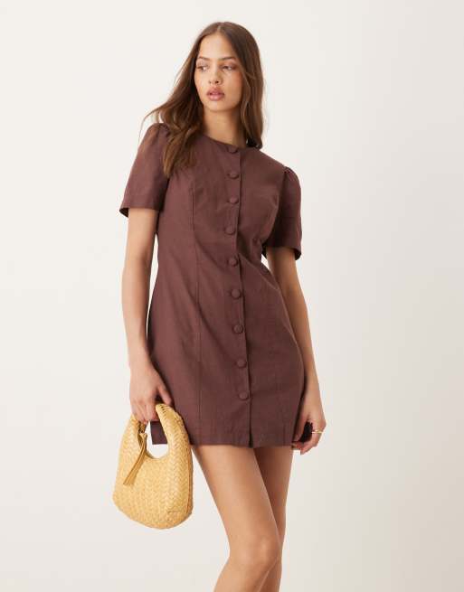Nobody's Child Tara puff sleeve tailored mini dress in brown
