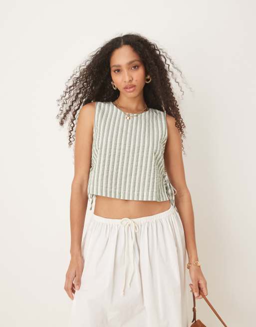 Nobody's Child Verity tie-side linen top in beige stripe