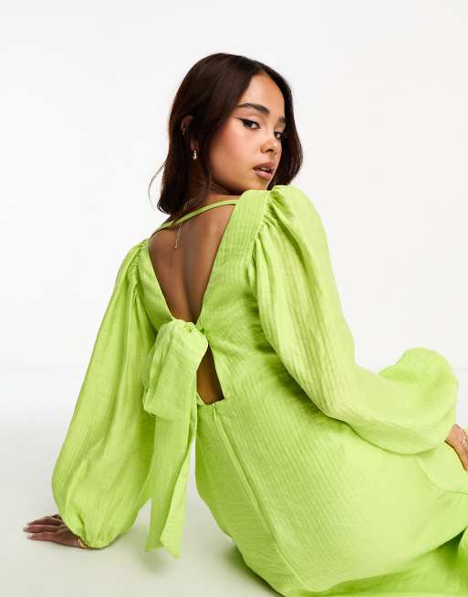 Nobody's Child Zendeya balloon sleeve midi dress in lime