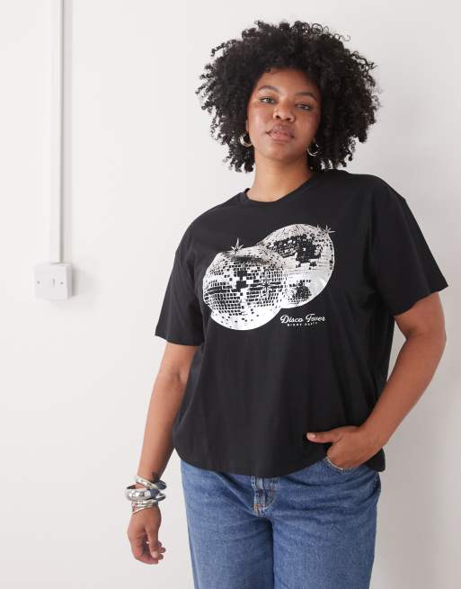Noisy May Curve disco print t-shirt in black