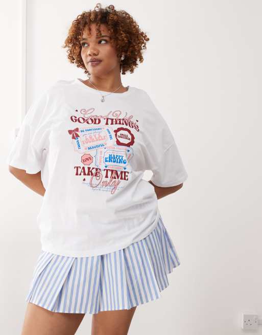 Noisy May Curve oversize t-shirt with good things print in white