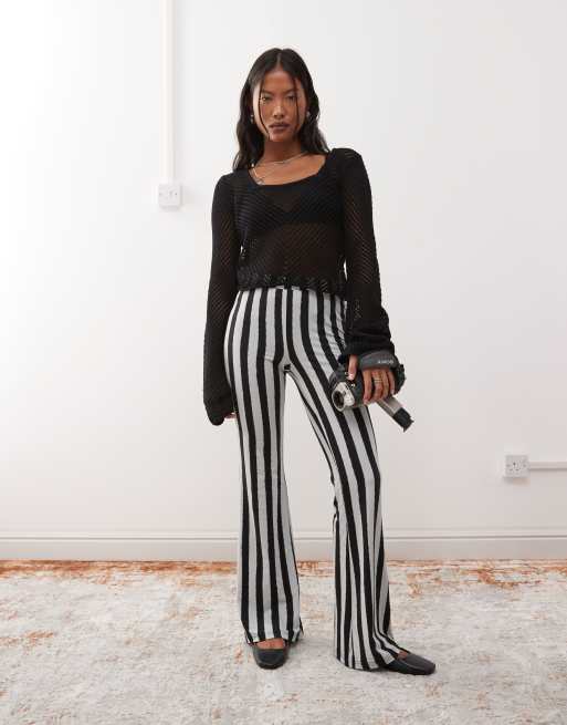 Noisy May Petite flare leggings in black with white stripe