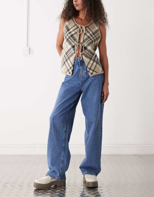 Noisy May Alexa mid rise wide leg jeans in mid blue denim