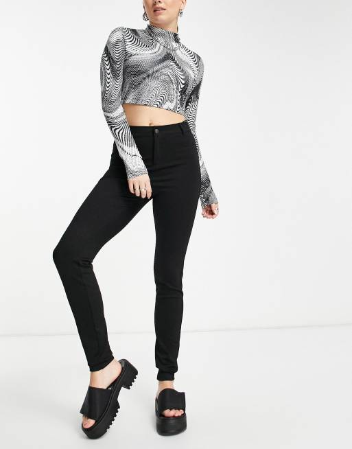 Noisy May Callie mid waist ponte skinny trousers in black