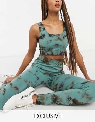 Noisy May exclusive legging co-ord in green and black tie dye