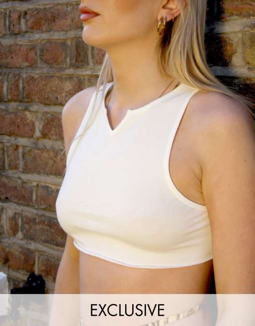 Noisy May exclusive notch front cropped vest in white