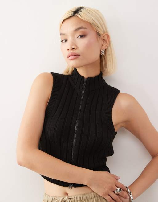 Noisy May high neck zip through knitted vest in black