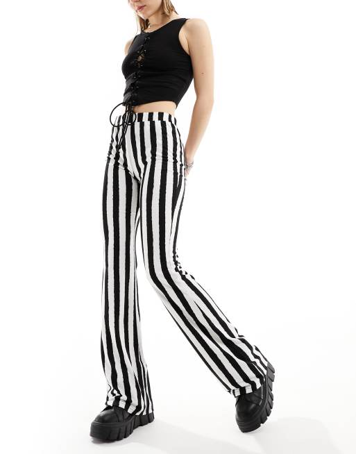 Noisy May jersey flare trouser in stripe