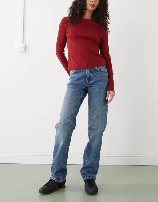 Noisy May Monica high waist straight jean in dark blue denim