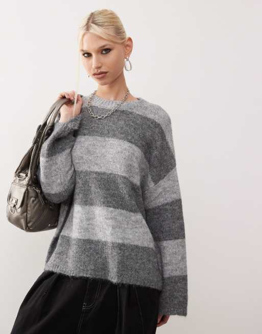 Noisy May oversize texture jumper in tonal grey stripe