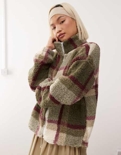 Noisy May oversized check fleece in cream and khaki