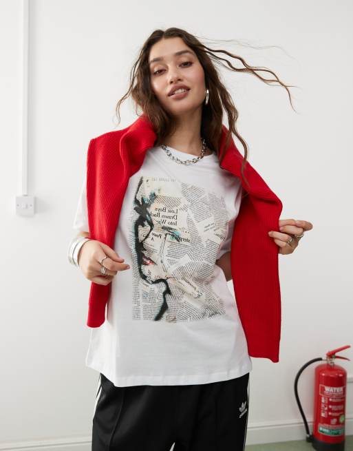 Noisy May oversized t-shirt with Madonna newspaper graphic in white