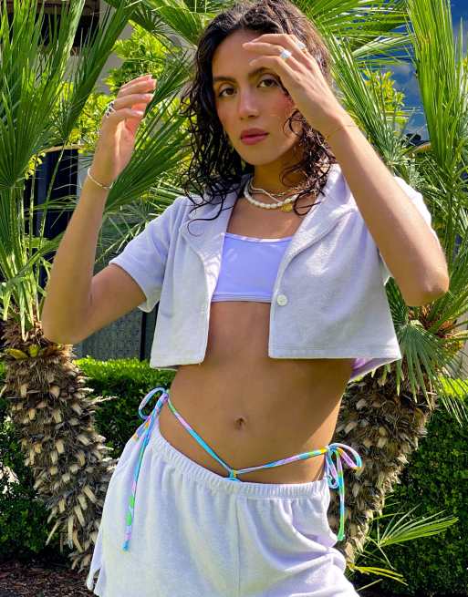 Noisy May towelling beach shorts co-ord in lilac