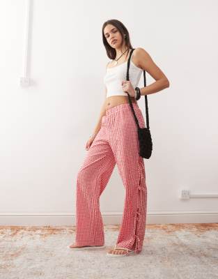 Noisy May wide leg side tie detail trousers in red gingham