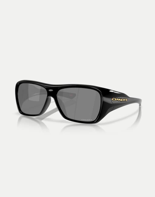 Oakley Chaminade rectangle sunglasses with black mirrored lens in polished black