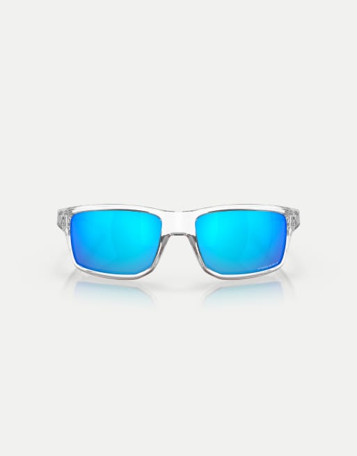 Oakley Gibston rectangle sunglasses with blue mirrored lens in polished clear