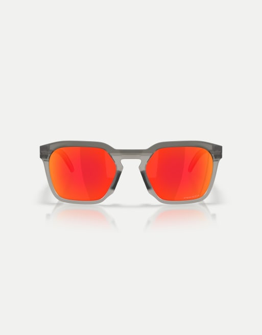Oakley Hstn sq square sunglasses with orange mirrored lens in matte grey smoke