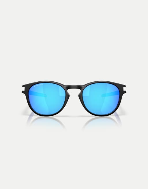 Oakley Latch™ fathom collection round sunglasses with blue mirrored lens in matte black