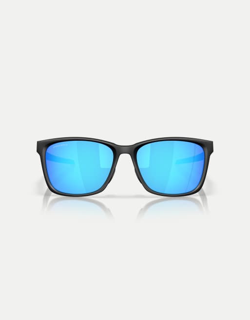 Oakley Paracord square sunglasses with blue mirrored lens in matte black