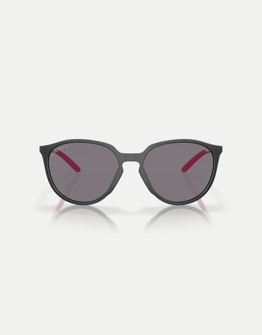 Oakley Sielo round polarised sunglasses with grey lens in matte black ink