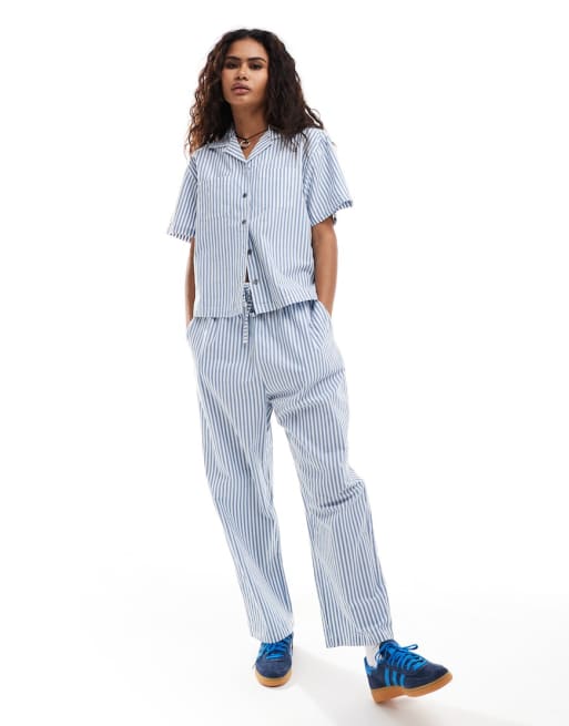 Obey co-ord cotton stripe set in blue
