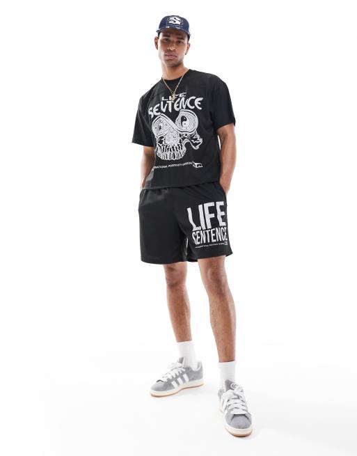Obey co-ord graphic mesh shorts in black