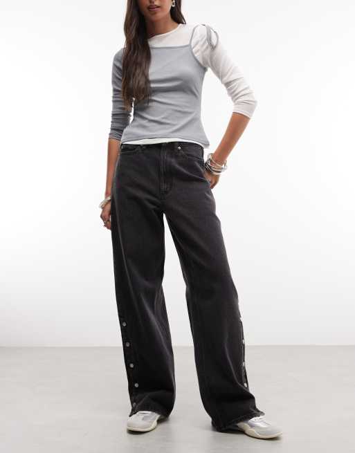 Obey penelope side snap button up denim jeans in faded black