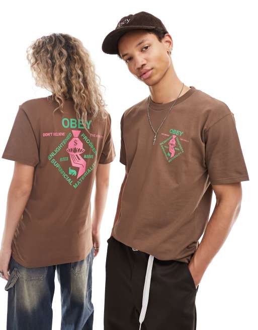 Obey unisex spiritually rich short sleeve t-shirt in brown