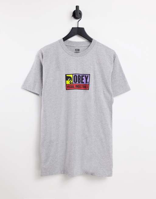 Obey visual industries chest logo t-shirt in grey