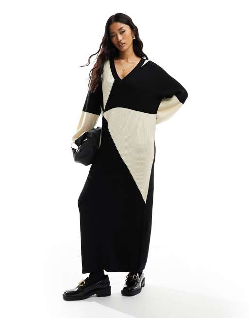 Object kaleidoscope v neck knitted jumper dress in mono print
