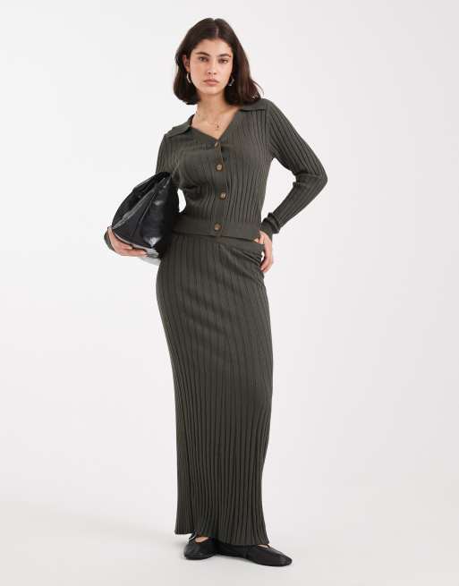 Object rib knitted maxi skirt co-ord in deep khaki green