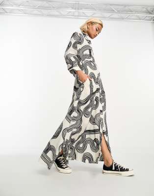 Object shirt maxi dress in mono swirl print