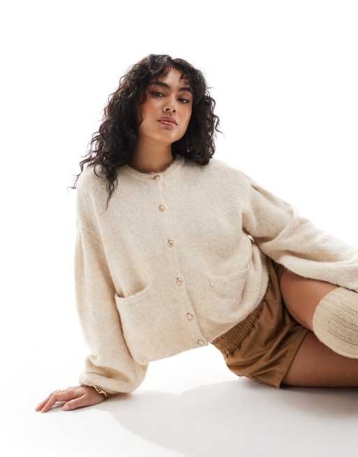 Object slouchy cardigan with gold buttons in cream