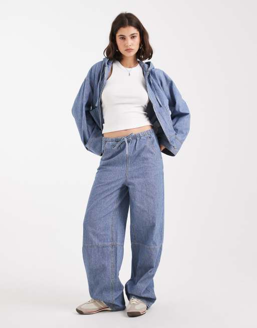 Object tie waist wide leg jeans co-ord in light blue wash