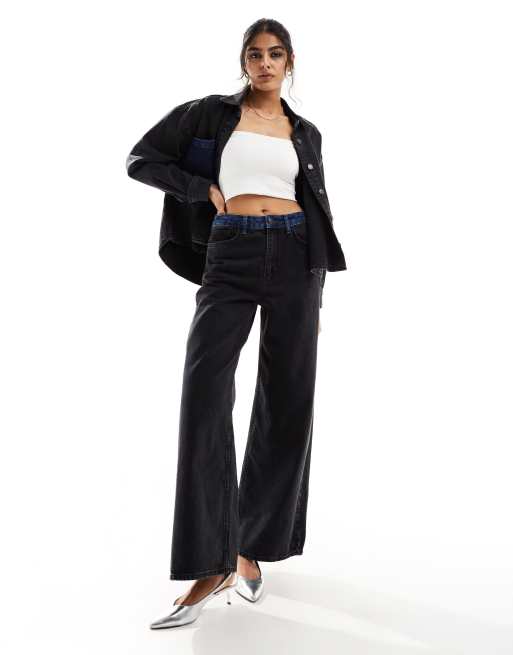 Object wide leg jean co-ord with contrast waistband in washed black