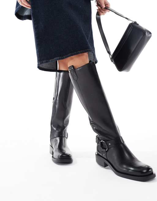 OFF THE HOOK 'ADDERSTONE' Block Heel Knee High Leather Boots in Black