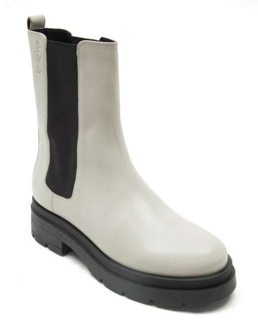 Off The Hook bank leather long chelsea boots in white