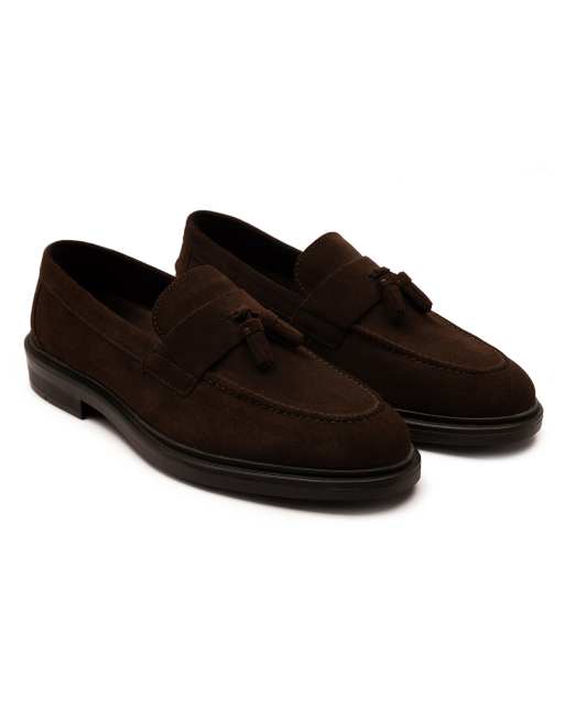 Off The Hook Blaine suede leather slip-on tassel loafers in brown