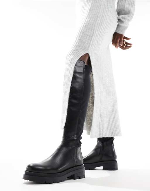 OFF THE HOOK 'BRIXTON' leather biker knee zip boot in black