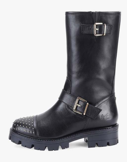 OFF THE HOOK 'CLEVEDEN' Block Heel Ankle Leather Boots in Black