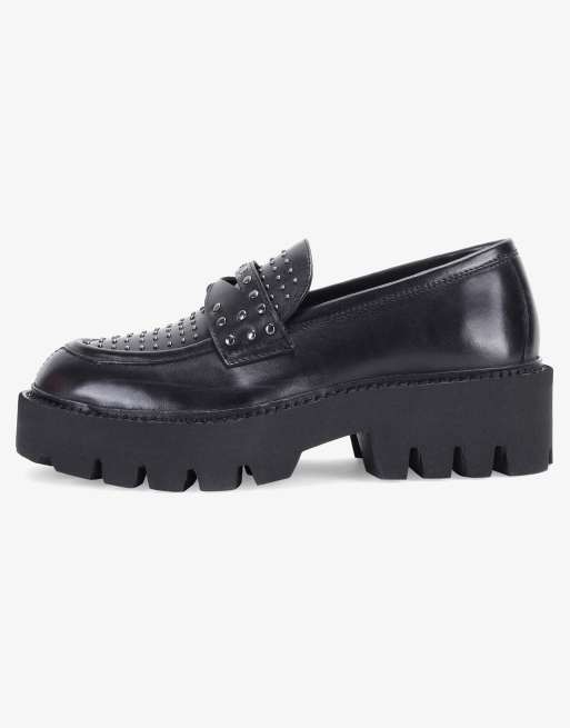 OFF THE HOOK 'COMPTON' stylish block heel black leather loafer shoes in black