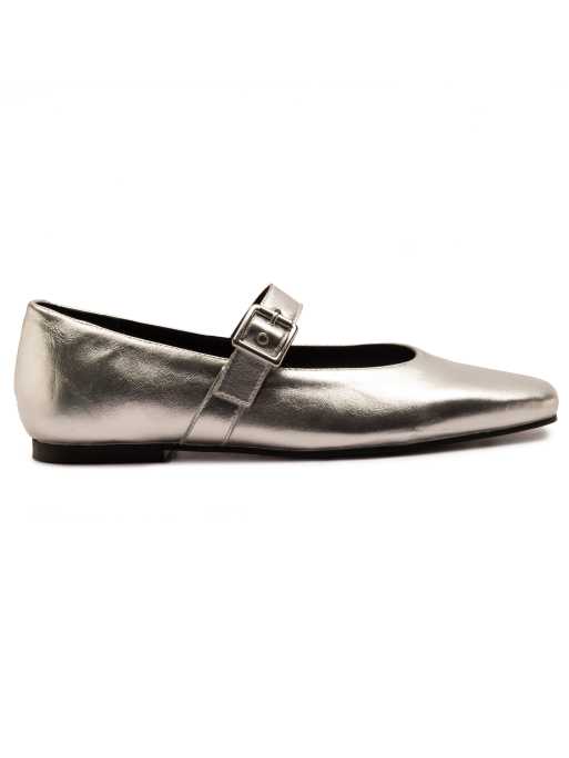 Off The Hook Cuffley leather square toe mary jane flats in silver