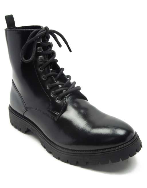 OFF THE HOOK LANDER lace up glossy leather boots in black