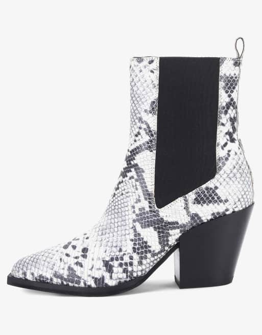 OFF THE HOOK 'MARLOW' Block Heel Western Ankle Leather Boots in Black White