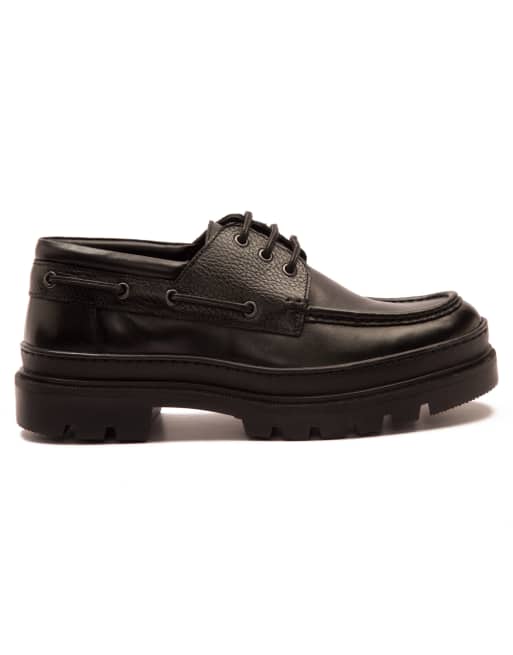 OFF THE HOOK 'RAYMOND' black leather elevated boat shoes in black