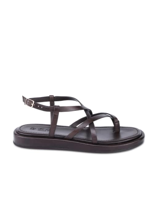 Off The Hook Zen leather strappy toe loop sandals with ankle strap in brown