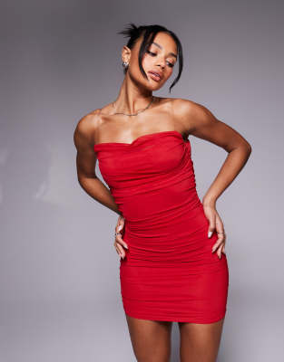 Oh Polly Femi bandeau ruched mini dress with clear straps in red