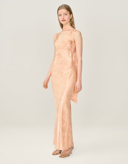 Omnes Accessories scarlett floral jacquard occassion neck scarf in peach in orange