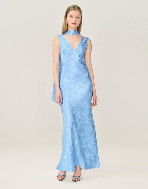 Omnes Accessories scarlett floral jacquard occassion neck scarf in powder blue in blue